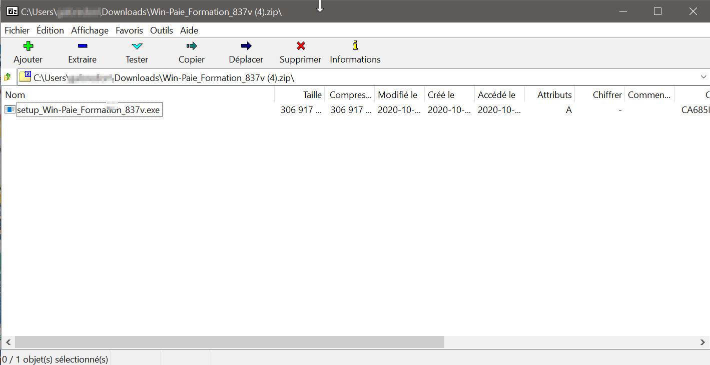Nb : l'utilisateur doit avoir des droits en lecture/écriture sur le répertoire Win-Paie, sous peine de bloquer le fonctionnement du logiciel.