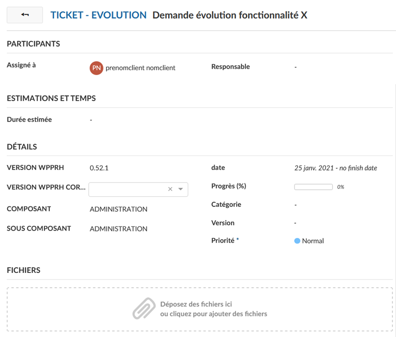 En double cliquant sur la demande concernée, vous pourrez également accéder à des éléments plus détaillés, et notamment à la possibilité de joindre des éléments directement dans la demande (captures d’écrans par exemple).