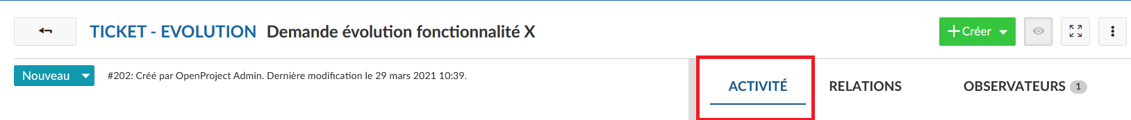 Pour cela, double cliquer sur le ticket souhaité et se rendre dans la zone « activité » située à droite de la demande :