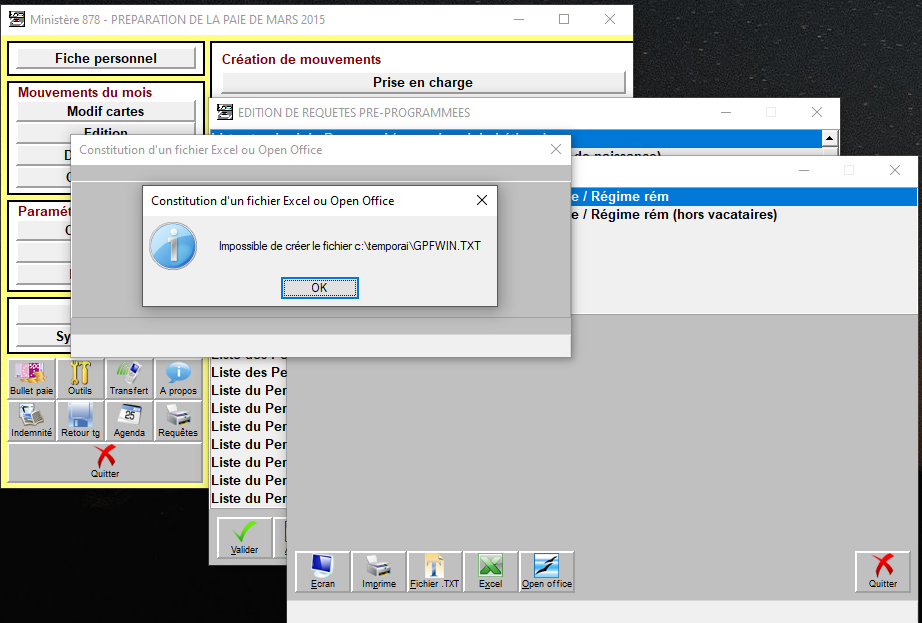 En voulant générer diverses requêtes sur Winpaie, vous avez ce message d'erreur qui apparaît :