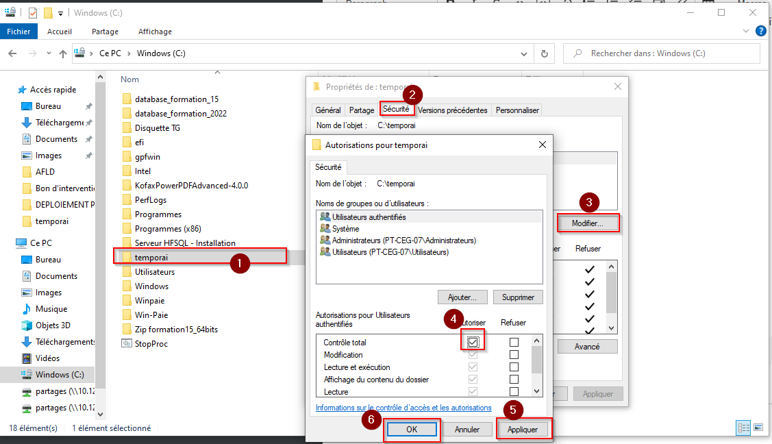 Vous n'avez pas les droit en lecture/écriture sur le dossier C : temporai.