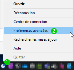 - Clic-droit sur l'icône Citrix Workspace (lancer l'application si elle n'apparait pas dans la barre des tâches).