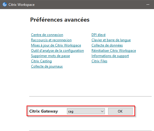 Dans le champ "Citrix Gateway", sélectionnez "cag".