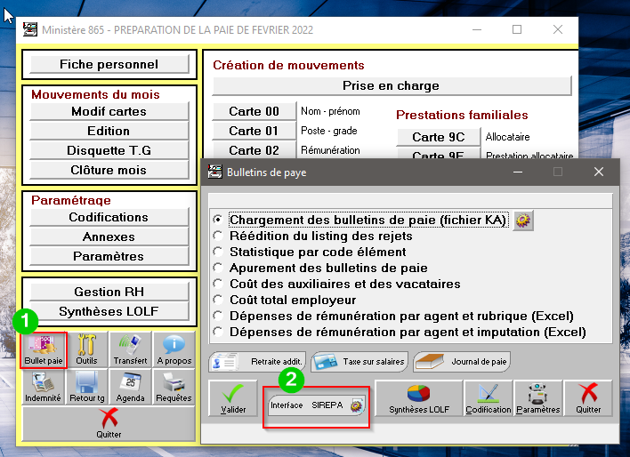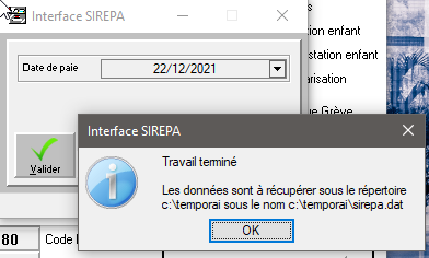 Une fois la saisie réalisée, il vous sera possible de générer le fichier attendu en entrée par SIREPA par l’intermédiaire de la fonctionnalité « Bullet.Paie » ► "Interface SIREPA"