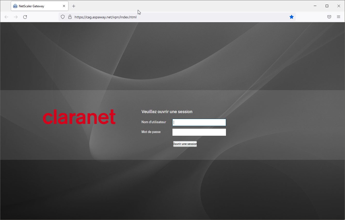 Via votre navigateur, vous pouvez accéder à Citrix Web Client via l'URL suivante : https://cag.aspaway.net/vpn/index.html
