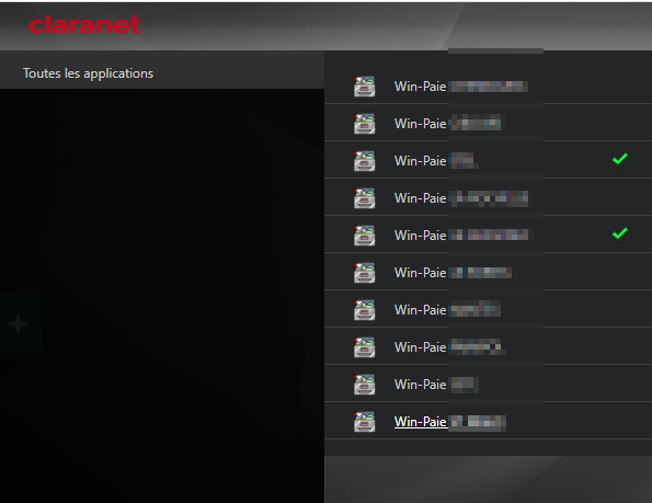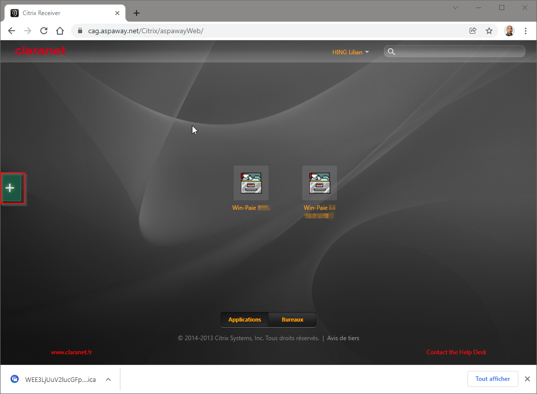 Nota : Il est possible de modifier le mode d'accès par défaut via le menu (2). Dans ce cas, l'installation du client "Citrix Workspace" est requise et le client "Citrix Workspace" sera lancé automatiquement lorsque vous cliquerez sur l'icône "Win-Paie".