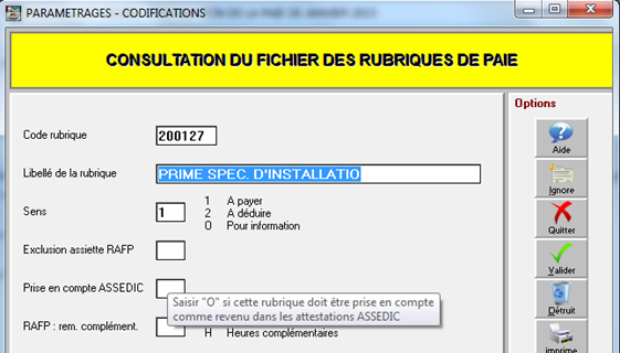 Pour cela, aller dans "bulletin de paie" "codification" et entrer le code élément :