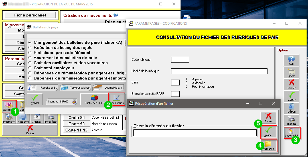 Cette mise à jour est accessible via l'onglet "Bulletin de paie" =} "Codifications" =} "Parcourir" =} Valider